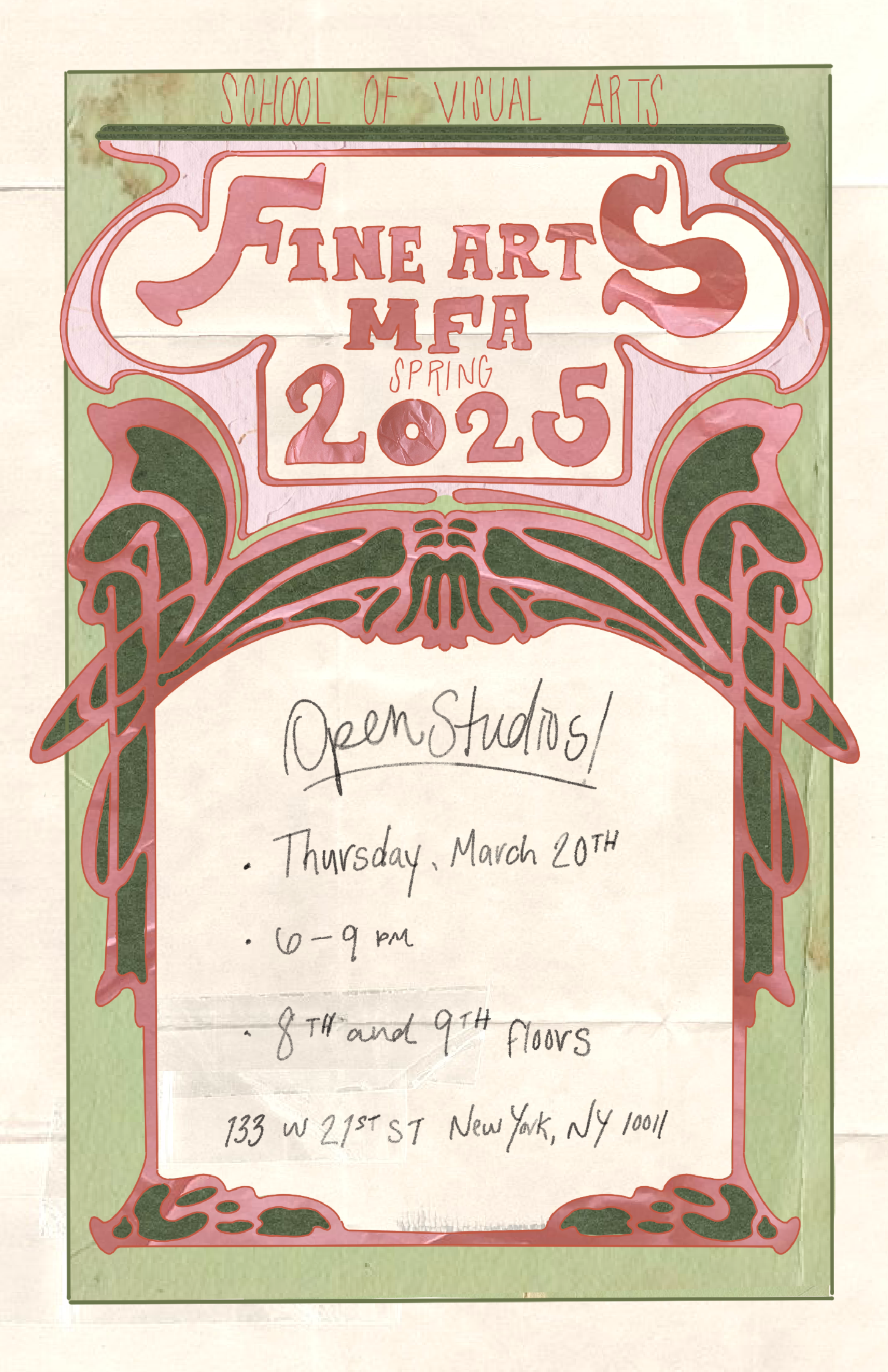 SVA MFA Fine Arts Spring 2025 Open Studios Mar 11 Written By Yujin Hur MFA Fine Arts Spring 2025 Open StudiosMar 20, 2025; 6:00 - 9:00pm133/141 West 21st Street, New York, NY 10011 Yujin Hur