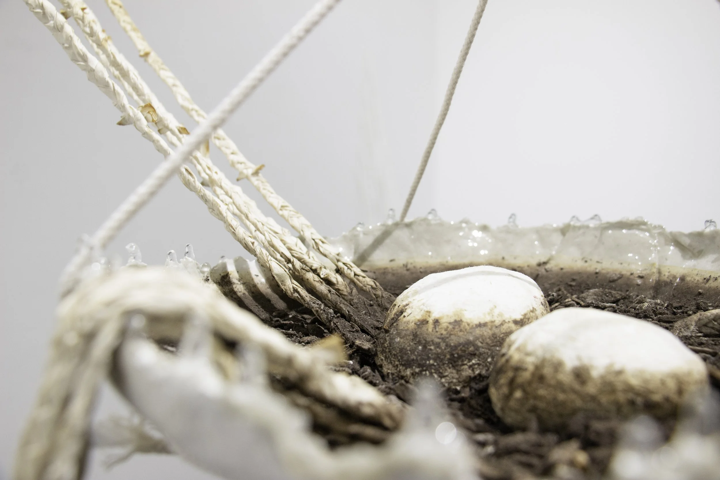 2025, Earth-dyed paper, paper pulp, resin and earth, 85” x 40” x 65”