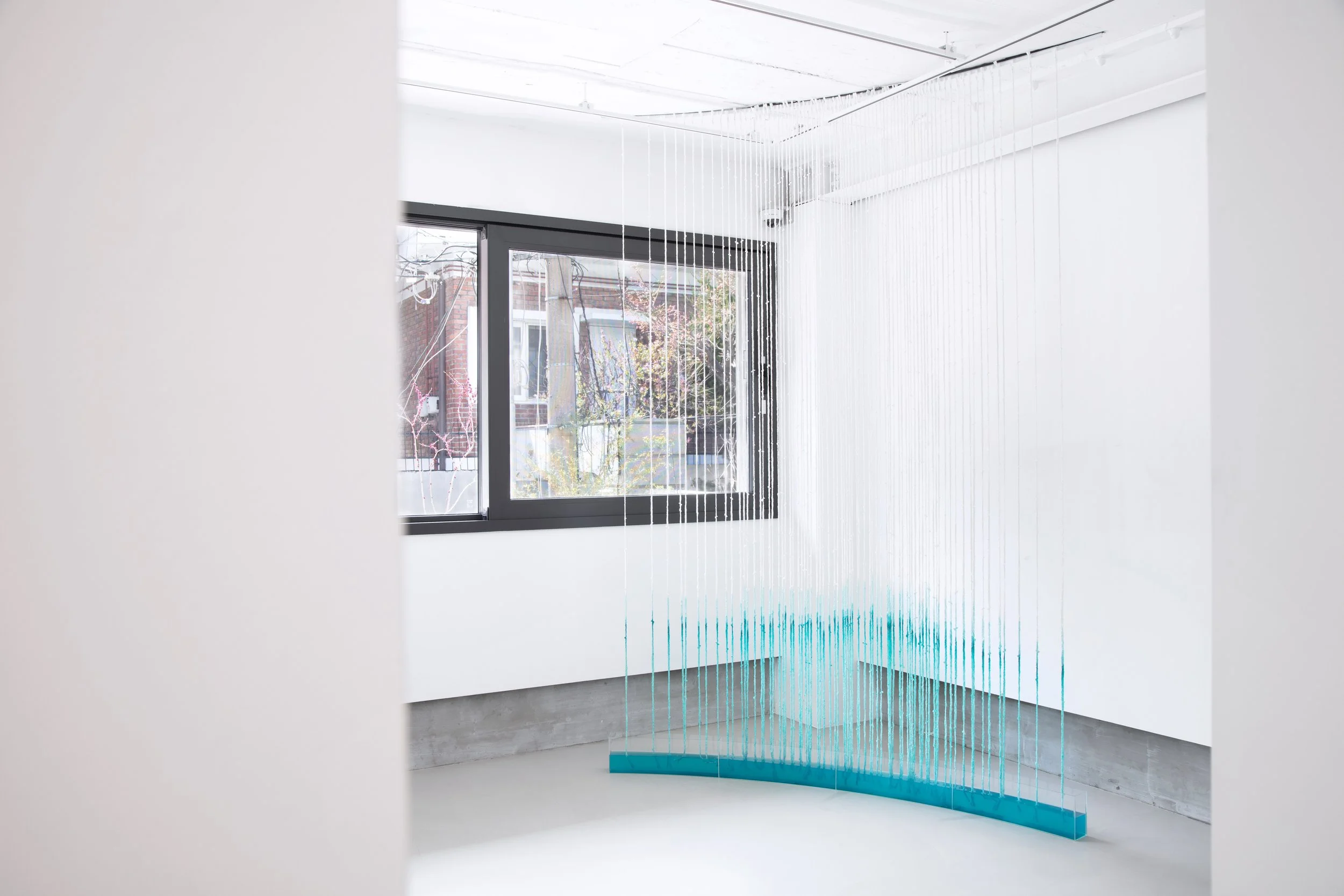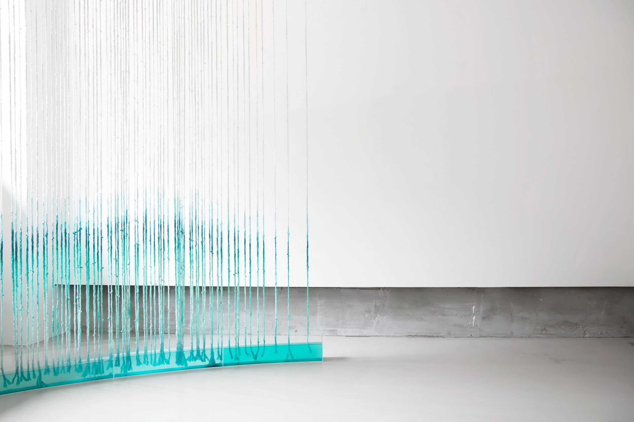 2022, Watercolor-dyed paper, Acrylic box, 79" x 11" x 118", Site-specific installation