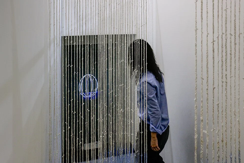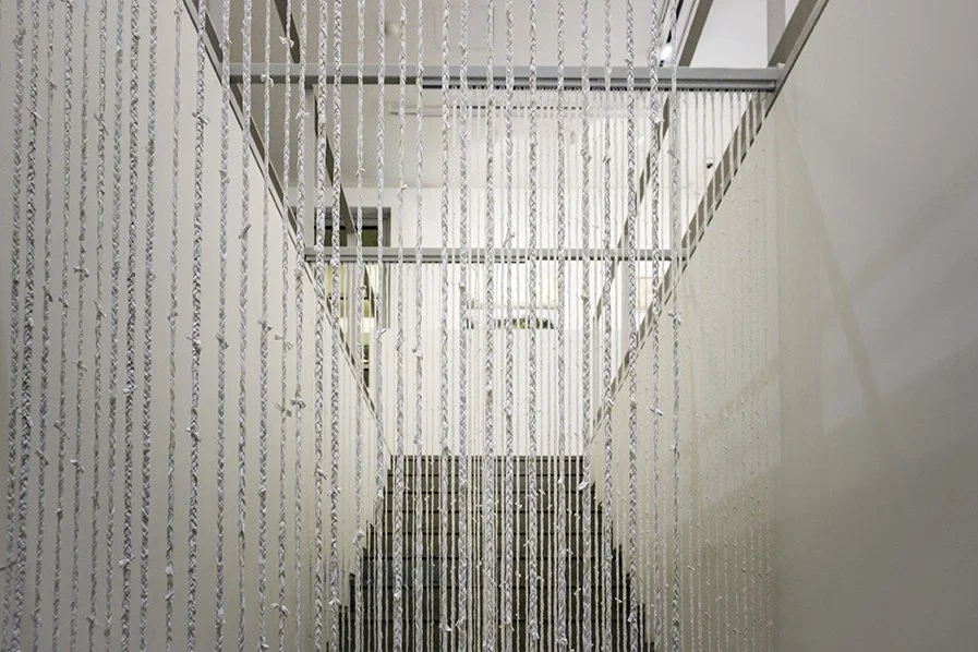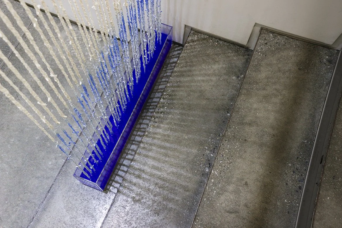 2023, Watercolor-dyed paper, Acrylic box, 51" x 98" x 63-106", Site-specific installation